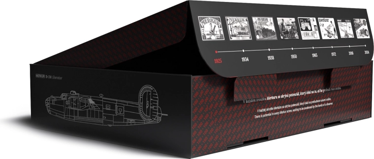 Deze exclusieve MERKUR-editie is gemaakt ter ere van de Tsjechische piloot František Švejdar en is uitgebracht in een gelimiteerde oplage van 2.500 stuks. Metalen geperforeerde onderdelen, schroeven en moeren zorgen voor stabiliteit en een lange levensduur, terwijl het eindmodel de iconische B-24 Liberator-bommenwerper natuurgetrouw weergeeft met functionele details van het landingsgestel en de propellers.