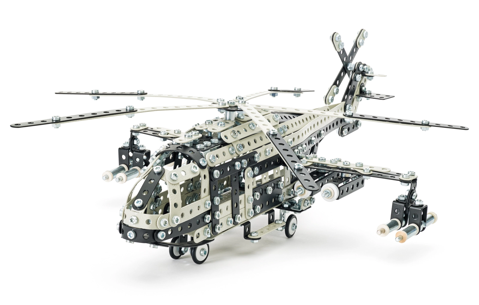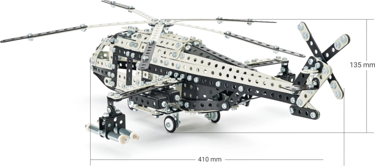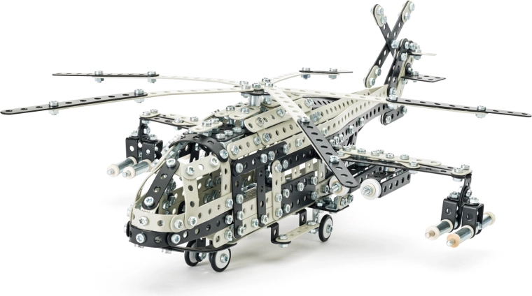 Vier 100 jaar traditie van de Tsjechische bouwset MERKUR met deze metalen set voor het bouwen van de legendarische gevechtshelikopter MIL MI-24. De set bevat 746 hoogwaardige metalen onderdelen die eenvoudig met schroefjes worden verbonden en zo de fijne motoriek, het logisch denken en de geduld stimuleren. Ideaal voor jonge technici vanaf 6 jaar die houden van creëren en technische uitdagingen.