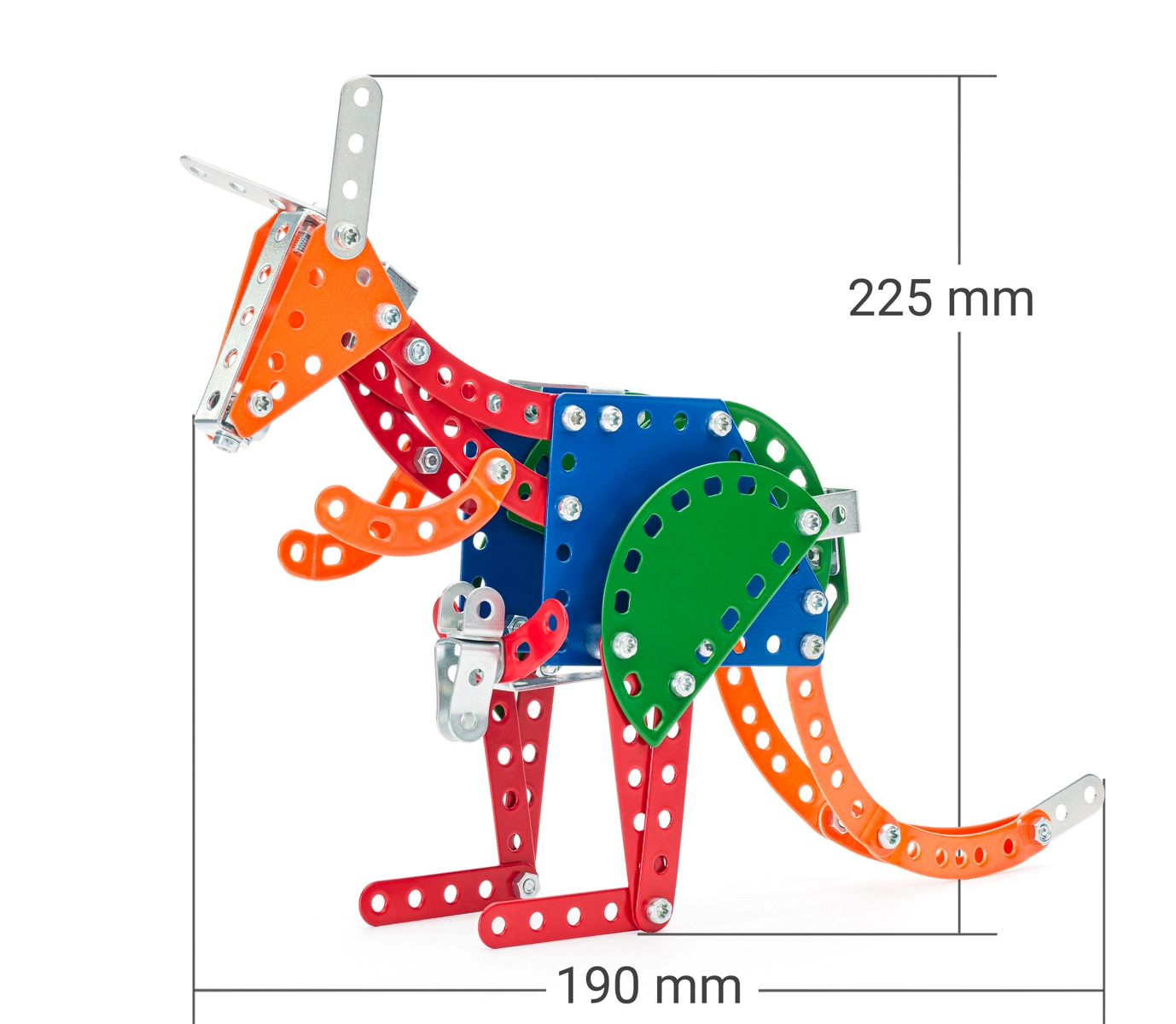Ontdek de bouwset MERKUR Zoo – kangoeroe met 148 metalen onderdelen, die de fijne motoriek, het logisch denken en de creativiteit van kinderen stimuleert. De onderdelen worden eenvoudig met schroefjes verbonden en maken het mogelijk een indrukwekkend kangoeroemodel te bouwen.