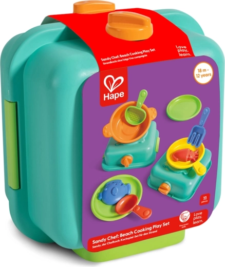 Begin je eigen strandkeuken met de HAPE Sandy Chef set! Deze draagbare zandkeuken biedt 11 onderdelen om te mixen, koken en serveren en stimuleert creatief spel, ontwikkeling van de fijne motoriek en samen plezier maken voor kinderen vanaf 18 maanden.