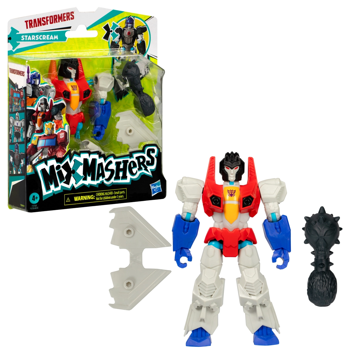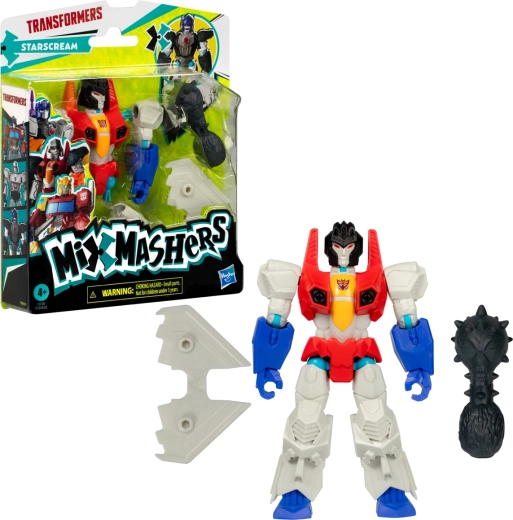 Creëer, combineer en bouw opnieuw! De Starscream-figuur uit de Transformers Mix & Mashers-collectie brengt speelplezier met onderdelen die je eenvoudig losmaakt en weer vastklikt. Kinderen kunnen armen, benen, vleugels en wapens verwisselen en zo een unieke robot samenstellen, precies zoals hun fantasie het wil.