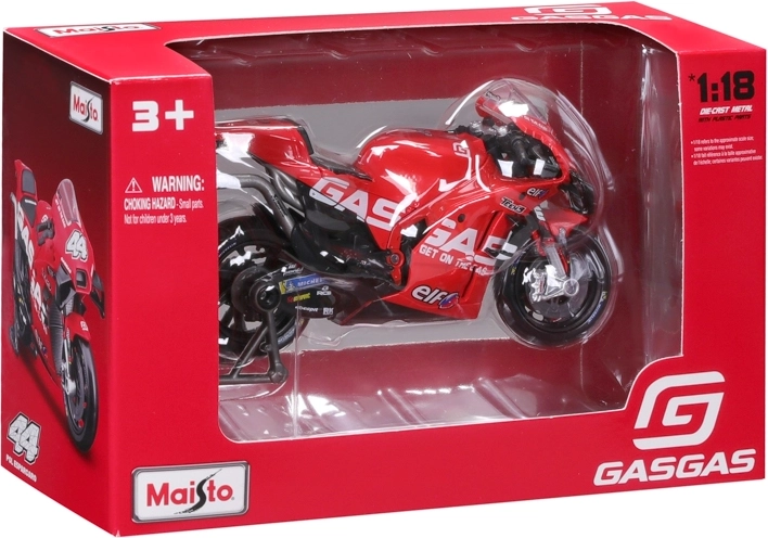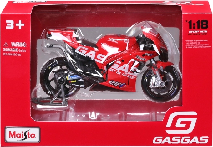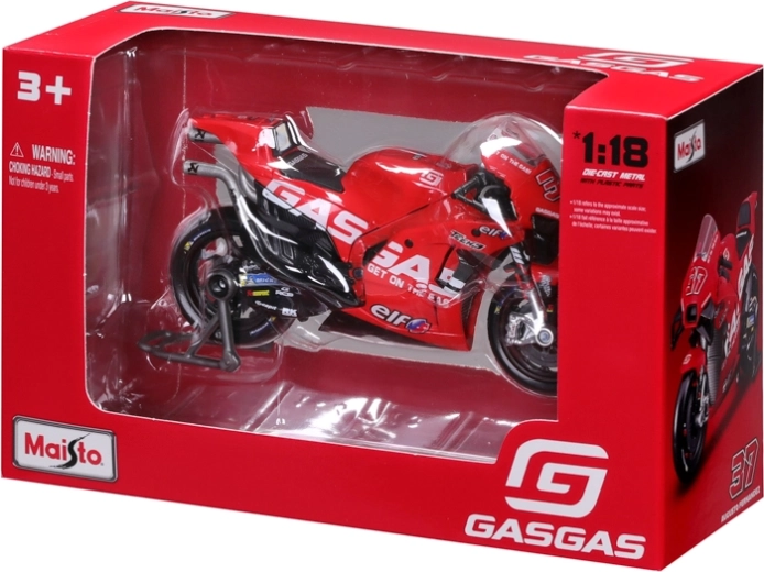 Verzamel de racepassie met het model Maisto GASGAS Factory Racing Tech3 2023 op schaal 1:18. Dit officieel gelicentieerde model met rijder nummer 37 Augusto Fernández valt op door precies vakmanschap, een metalen body met kunststof details, vrij draaiende wielen en een steunstandaard voor stabiele presentatie. Ideaal voor verzamelaars en voor spel vanaf 3 jaar.