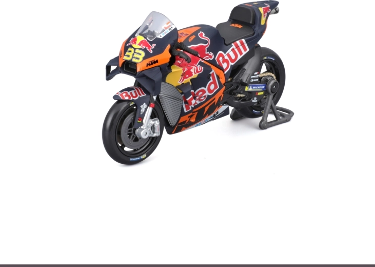 Officieel gelicentieerde teamkleuren van RED BULL KTM en gedetailleerde belettering met het nummer 33 van coureur Brad Binder voor maximale realiteit in de vitrine of op het bureau.