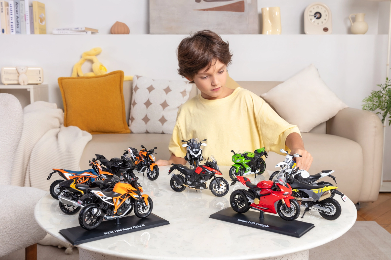 De set bevat een elegante standaard en een designdoos van de serie Special Edition Motorcycles – ideaal voor verzamelaars of als cadeau.
