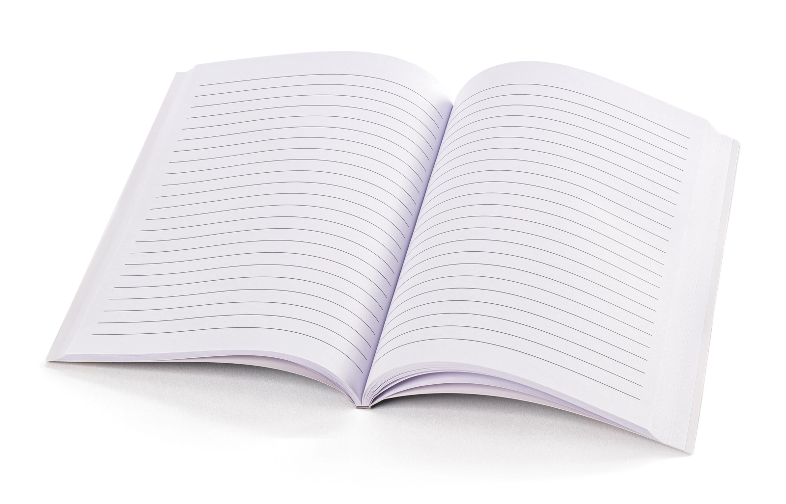 - Schrijfcomfort: gelinieerde pagina’s en makkelijk openen voor plat schrijven.
