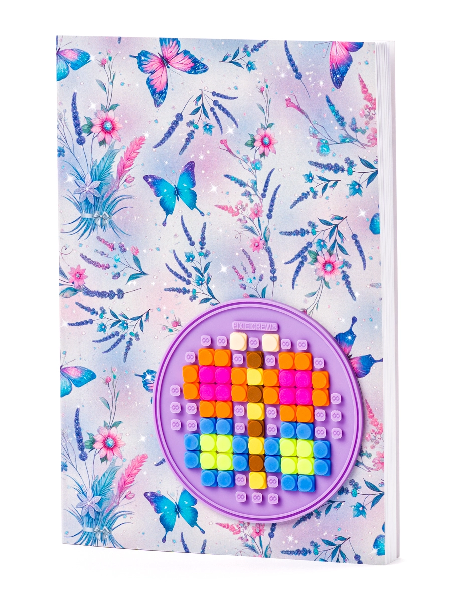 Dit A5-notitieblok met kleurrijke vlinders combineert praktisch nut en plezier. Dankzij het geïntegreerde siliconen paneel van PIXIE CREW kunnen kinderen op elk moment hun eigen design, naam of symbool van pixelelementen maken en de cover eenvoudig aanpassen aan hun stemming. Het blok is ideaal voor het noteren van taken, het bijhouden van een dagboek, schetsen en snelle aantekeningen.