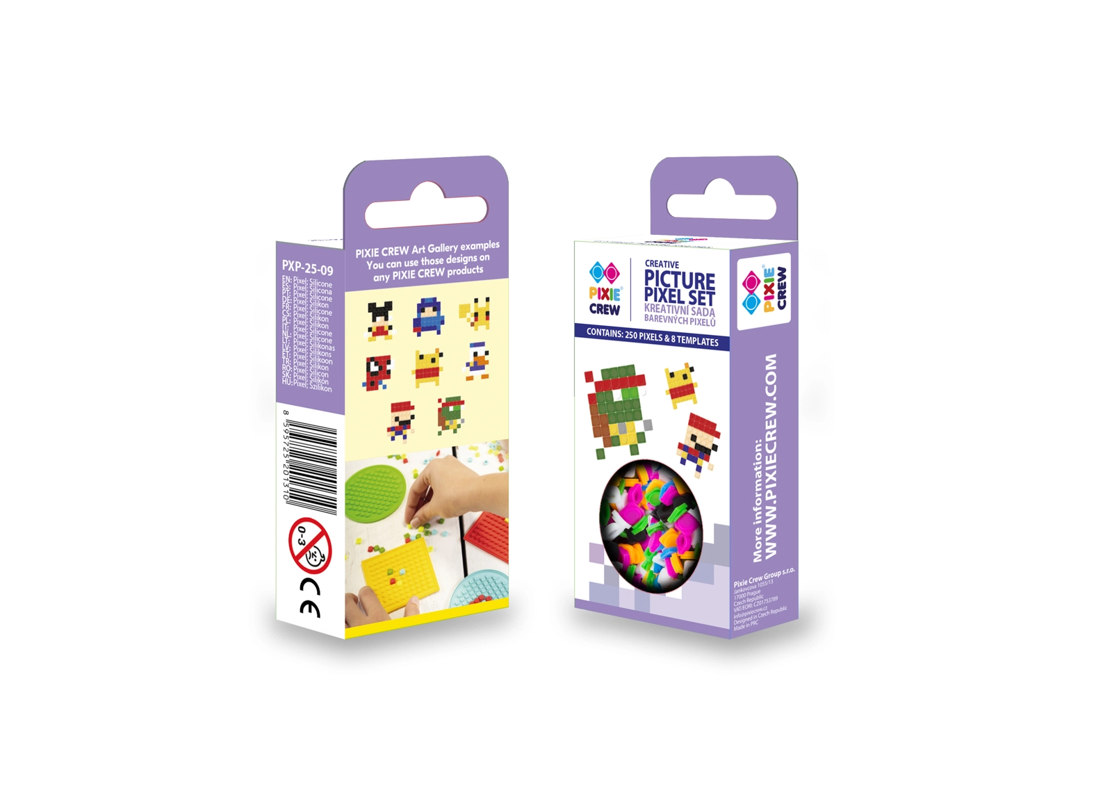 De PIXIE CREW creatieve set is ideaal voor jonge makers die dol zijn op pixel art. In de verpakking vind je 250 hoogwaardige siliconen pixels en 8 motieven waarmee je gemakkelijk leuke afbeeldingen maakt. Dankzij de gepatenteerde vorm blijven de pixels stevig vastzitten op siliconen panelen, zodat je creatie niet zomaar uit elkaar valt.