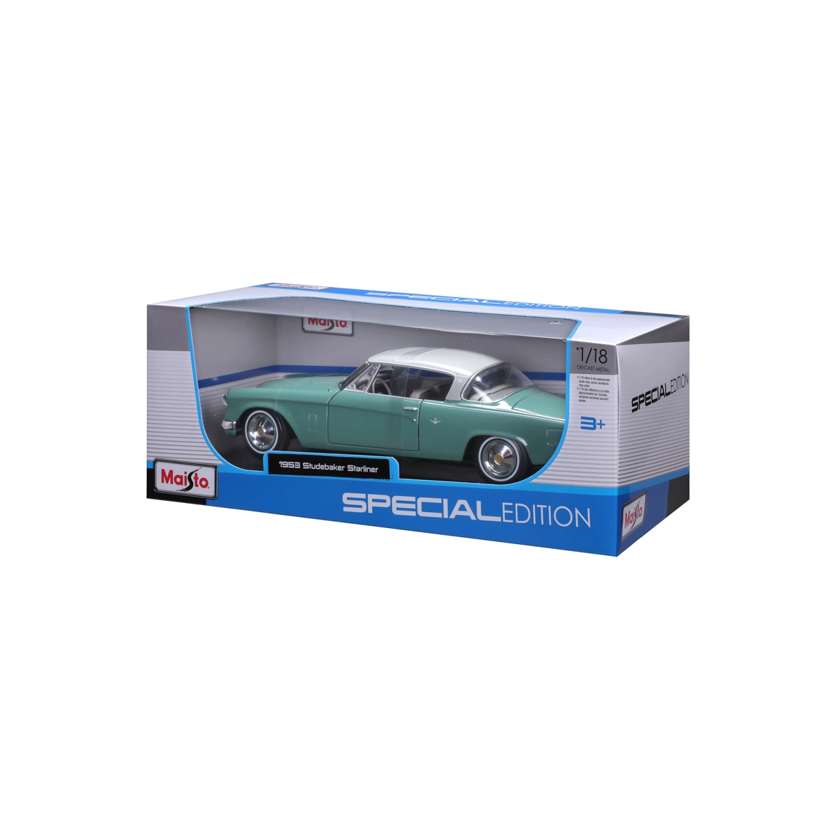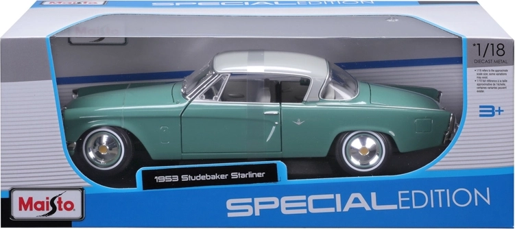 Maisto Special Edition brengt een gedetailleerde weergave van een klassieker uit de Amerikaanse autogeschiedenis – de 1953 Studebaker Starliner. Dankzij de die-cast constructie van gegoten metaal en de precieze details van interieur en exterieur oogt het model uitzonderlijk geloofwaardig. Op schaal 1:18 komt het prachtig tot zijn recht in de vitrinekast van elke verzamelaar en liefhebber van oldtimers.