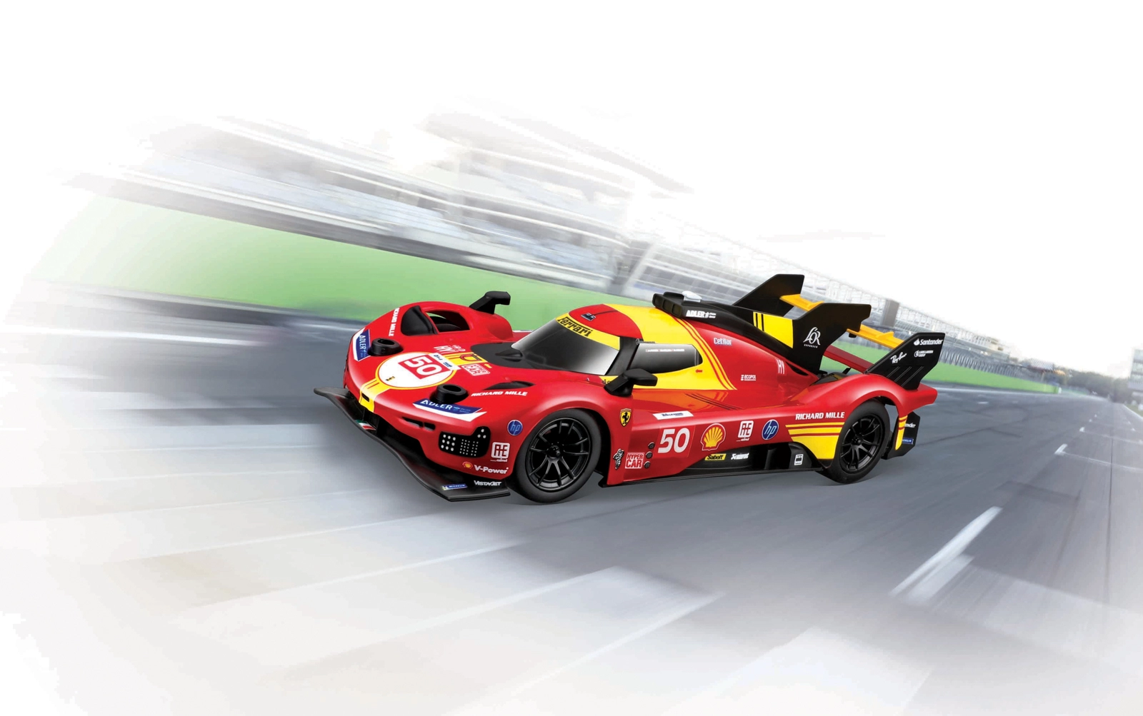 - Authentieke Ferrari‑licentie en de race‑livery van de winnaar van 24H LE MANS 2024.