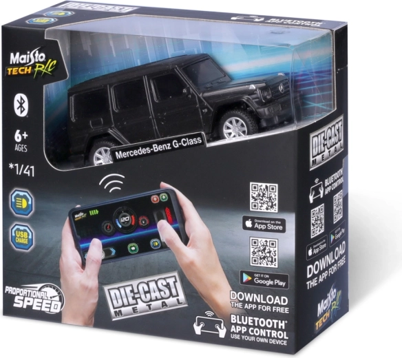 De Maisto RC Mercedes‑Benz G‑Class brengt premium uitstraling en moderne technologie naar de wereld van miniaturen. Dankzij bediening via Bluetooth 5.0 en een stabiele 2,4GHz verbinding krijg je responsieve en betrouwbare besturing zonder storingen. De auto in schaal 1:41 verrast met een gedetailleerde afwerking van de carrosserie en functionele verlichting voor een nog realistischer rijervaring.