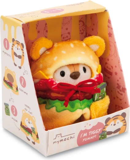 Tiggy is een gestreepte tijger met onweerstaanbaar zachte NICI-pluche, klaar om te vermaken met zijn food‑style hamburgerkostuum. Dankzij de verwisselbare kostuums uit de MyMochi-serie kun je de figuurtjes eenvoudig van look laten wisselen en je collectie uitbreiden met nog meer schattige vrienden. Het compacte formaat en het lusje maken hem tot het perfecte accessoire voor op reis en naar school.