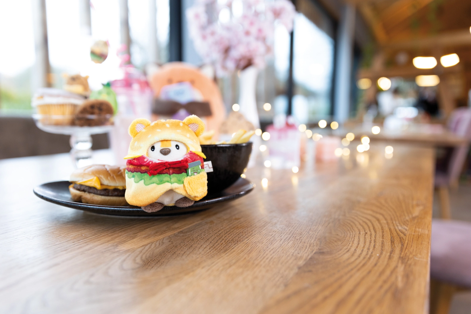 Tiggy is verkleed als een grappige hamburger met broodje, sla en tomaat. Het kostuum is zacht, makkelijk aan te trekken en tovert het spel meteen om in een culinair avontuur.