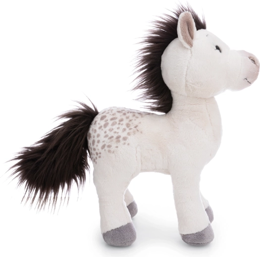 De pluche pony Mony in het wit met grijze vlekken, zwarte manen en staart verovert meteen de harten van alle paardenliefhebbers. Het zijdezachte oppervlak en de geborduurde details garanderen veiligheid, ook voor de allerkleinsten vanaf 12 maanden. De staande uitvoering stimuleert creatief en fantasierijk spel en staat bovendien prachtig op een plank.