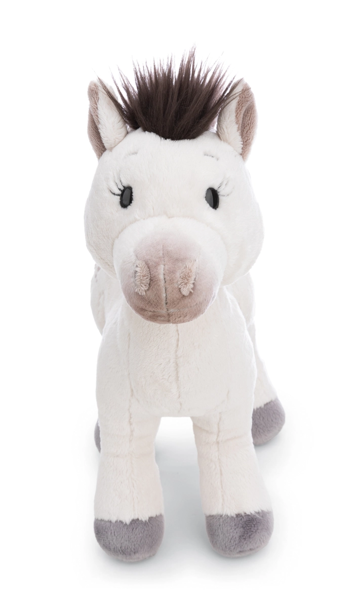 Pluche paard Mony betovert met haar witte vacht met een grijs gevlekt patroon op de flanken, een lieve uitstraling en een aangenaam zachte vulling. Dankzij de hoogwaardige afwerking van NICI is ze ideaal voor dagelijks knuffelen en fantasierijk spel.