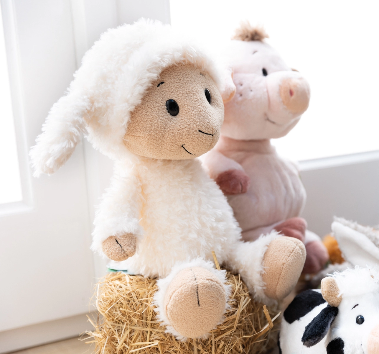Geborduurde ogen en glimlach zonder kleine onderdelen maken van het schaapje een ideale vriend ook voor de allerkleinsten.