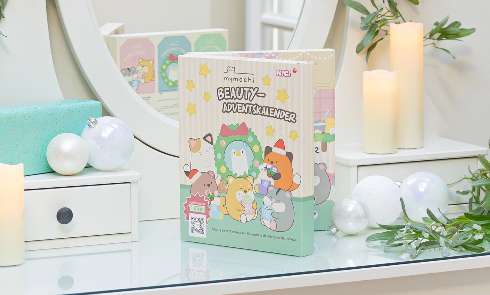 Maak het wachten op Kerstmis leuker met de cosmetische adventskalender NICI MyMochi. Je vindt er 24 verrassingen uit de wereld van beauty en accessoires – van haaraccessoires en nagelverzorging tot decoratieve cosmetica voor jonge meisjes en tieners. Het hoogtepunt is een trendy sleutelhanger met het katje Angy. Een ideaal cadeau voor fans van MyMochi en de kawaii-stijl.