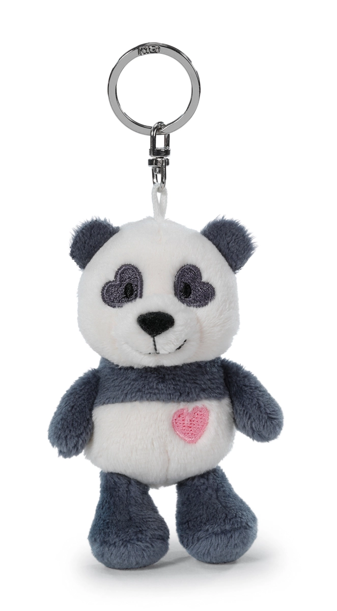 Word elke dag blij van een kleine attentie die zowel kinderen als volwassenen verrukt. De pluche panda met roze hartje op het buikje heeft een zachte grijs-witte vacht, geborduurde details en een compact formaat van 10 cm – ideaal als hanger aan sleutels, handtas of schooltas.