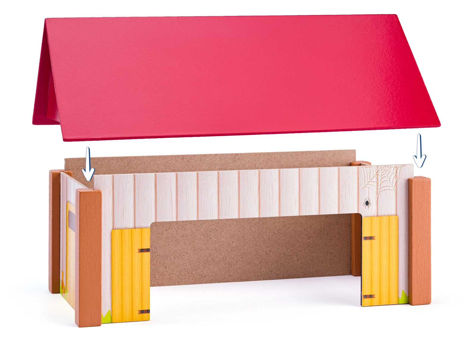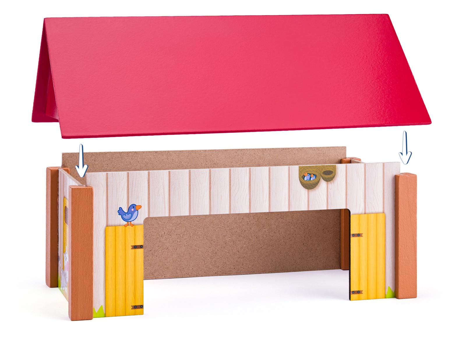 Deze prachtige houten boerderij brengt de wereld van dieren en het landelijke leven rechtstreeks naar de kinderkamer. Drie afzonderlijke gebouwen met afneembare daken bieden gemakkelijke toegang naar binnen en uiteenlopende speelscenario’s. De tweedelige speelmat met wegen, een vijver en natuurelementen creëert een realistische omgeving voor figuurtjes en voertuigen.