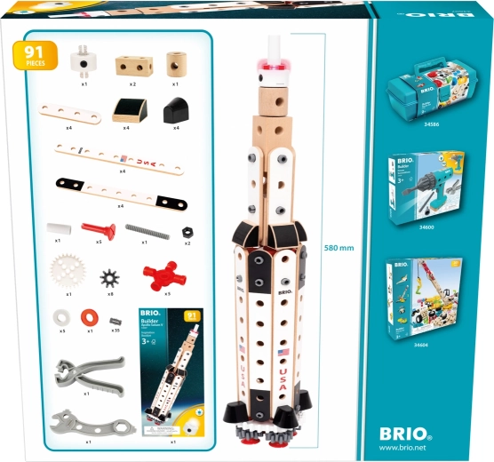 Bouw je eigen ruimtelijke legende met de BRIO Builder NASA Apollo Saturn V. Deze 60 cm hoge bouwset met 91 onderdelen, een combinatie van hout en kunststof, biedt 3 rakettrappen inclusief knipperende neus. Kinderen kunnen het model ombouwen tot een ruimteshuttle of vliegtuig en zo creativiteit, fijne motoriek en technisch inzicht ontwikkelen. Geschikt vanaf 3 jaar, met batterijen inbegrepen.
