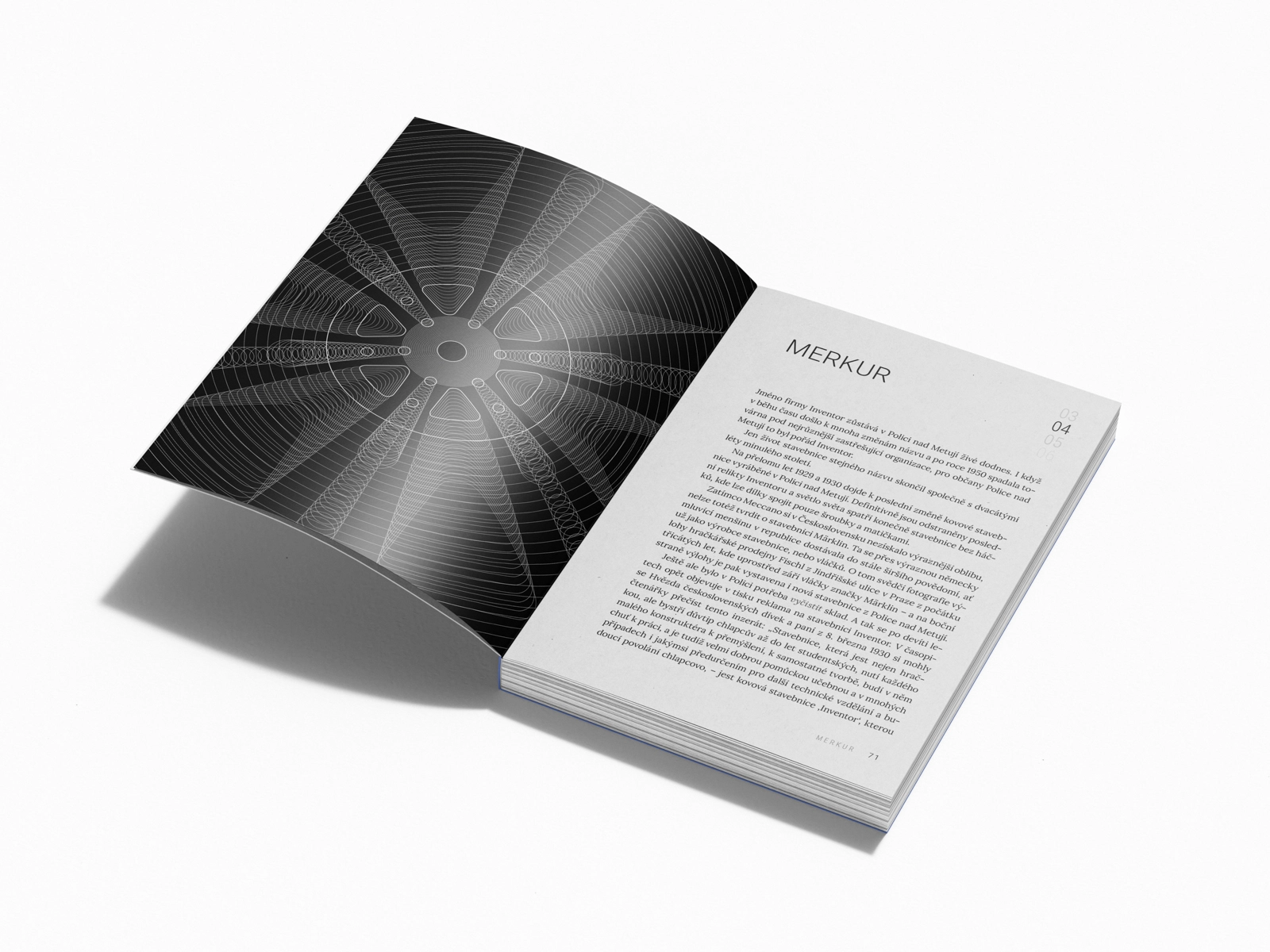 Het boek Ik, MERKUR – Het verhaal van een bouwdoos die generaties verbond, biedt het allereerste complete overzicht van de ontwikkeling van metalen bouwdozen die in Police nad Metují werden vervaardigd. Van het oorspronkelijke merk Inventor tot de beroemde naam MERKUR sinds 1930 volgt de publicatie de bewogen fases van de 20e eeuw en de lotgevallen van de mensen die het merk vormgaven.