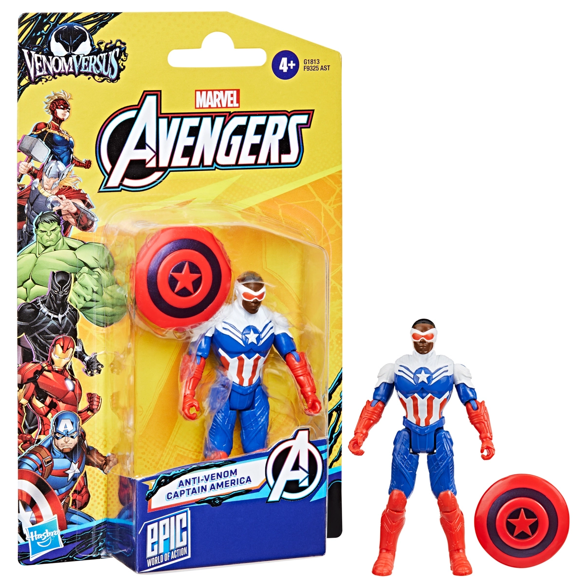 De figuur Captain America – Anti‑Venom uit de exclusieve serie Hasbro Epic World of Action brengt het klassieke ontwerp van de geliefde superheld met een duistere symbiont-twist. Dankzij 9 scharnierpunten neemt hij gemakkelijk dynamische poses aan en prikkelt hij de verbeelding tijdens gevechten met Venom en zijn venomized schurken.