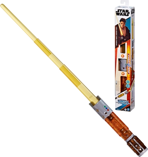 Maak je eigen legendarische zwaard en beleef actievolle avonturen als een echte Jedi. Het Hasbro Lightsaber Forge Yord Fandar lichtzwaard heeft een uitschuifbaar geel lemmet, lichteffecten en authentieke geluiden die elke strijd en trainingssessie versterken. Dankzij de transparante, lichtgevende kern met kyberkristaldesign oogt het zwaard uniek en opvallend.