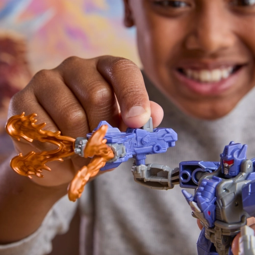 De veelzijdige blaster met twee modi kan zowel in de robot- als in de draakmodus worden bevestigd, waardoor gevechtsscènes naar een hoger niveau worden getild. Verstelbare ledematen zorgen voor nog dynamischere poses en het uitstallen van verzamelwaardige scènes uit het Transformers-universum.