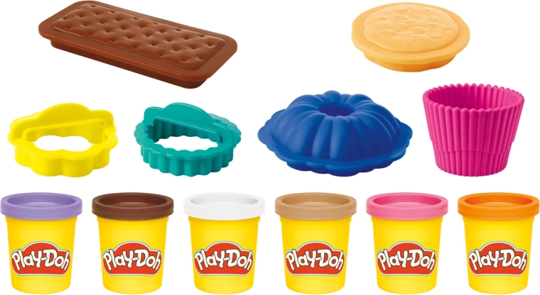 De Hasbro Play-Doh kleine lekkernijen – banketbakkerij set biedt alles wat kinderen nodig hebben om zoete creaties te maken zonder kruimels en rommel. Dankzij het brede kleurenpalet en de praktische tools kunnen ze eenvoudig “taartjes”, koekjes en andere lekkernijen “bakken” en hun fantasie ontwikkelen.