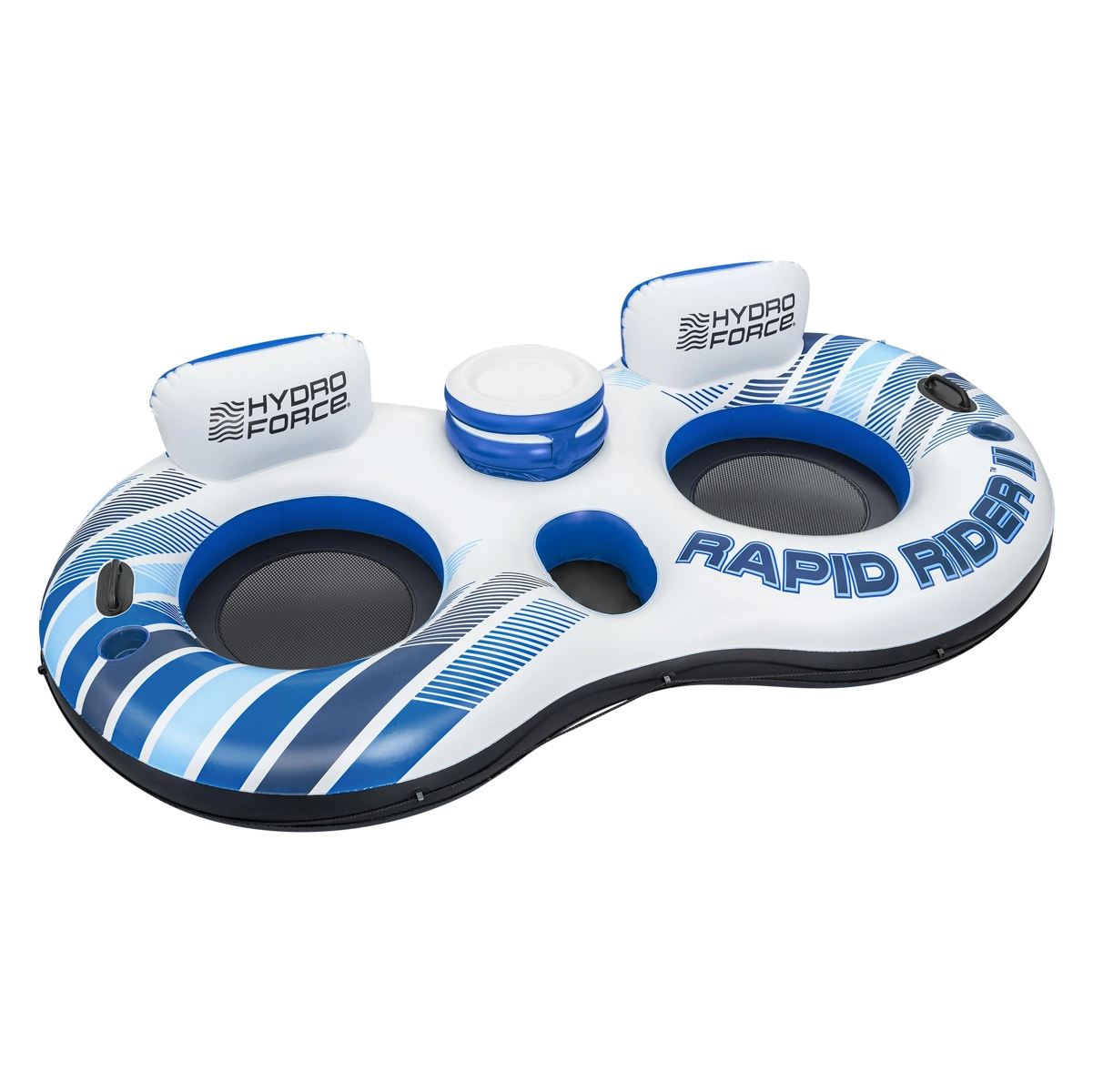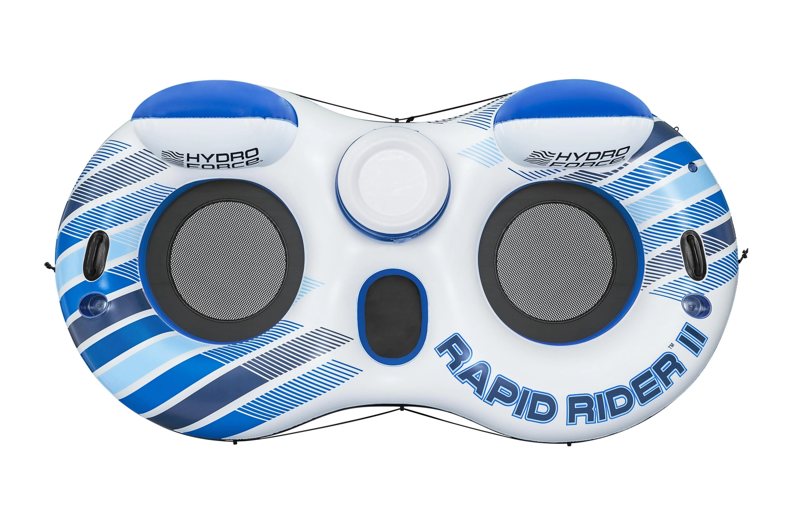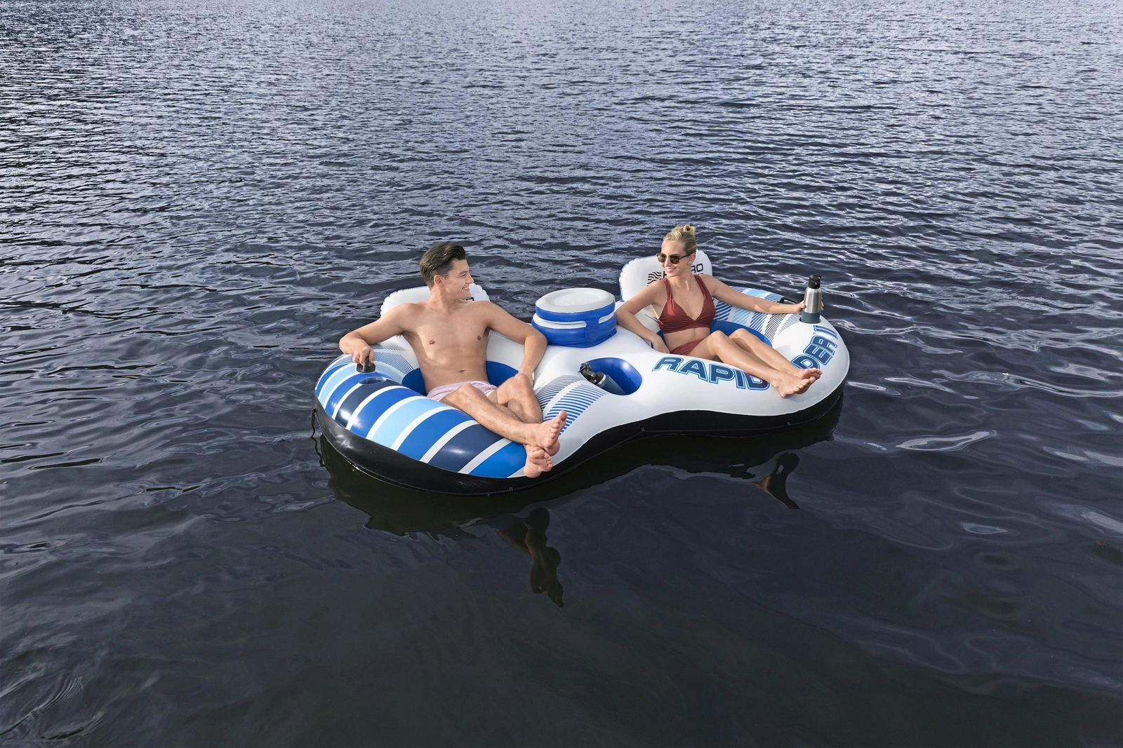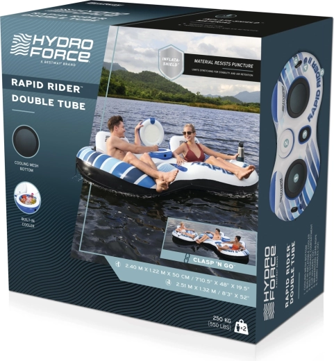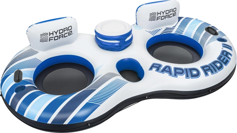 Geniet zorgeloos van ontspanning op het water met de tweepersoons opblaasstoel HYDRO-FORCE RAPID RIDER II. Hij biedt netzitjes voor aangename verkoeling, hoge stabiliteit dankzij meerdere luchtkamers en geïntegreerde bekerhouders. Een praktische koelbox en opbergruimte houden je spullen binnen handbereik, terwijl stevige handgrepen, een veiligheidslijn en het Clasp ’N Go™-systeem zorgen voor comfortabel koppelen met andere drijvers. Het Color Shield™-oppervlak beschermt de kleuren tegen vervagen.