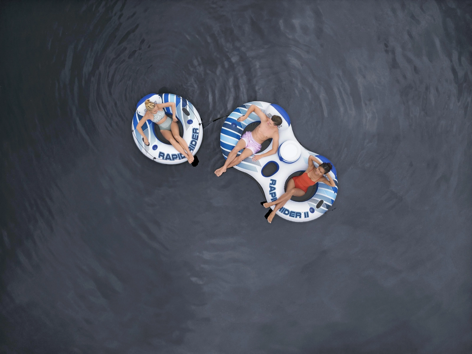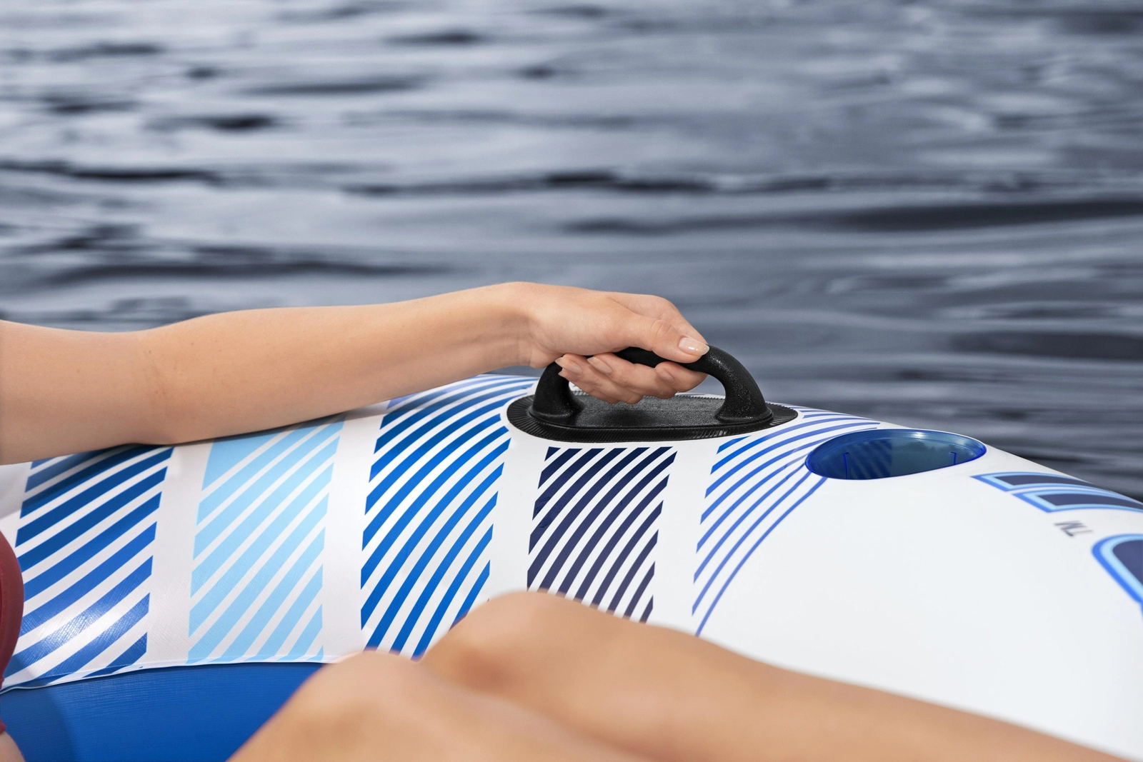 Doordachte details verhogen comfort en veiligheid: twee bekerhouders, een centrale koelbox, praktische opbergruimte, stevige handgrepen, een rondom lopende veiligheidslijn en de mogelijkheid om te koppelen met andere tubes via Clasp ’N Go™. Snelventielen versnellen het opblazen en leeglaten, zodat je in een mum van tijd klaar bent voor het water of voor de terugreis.