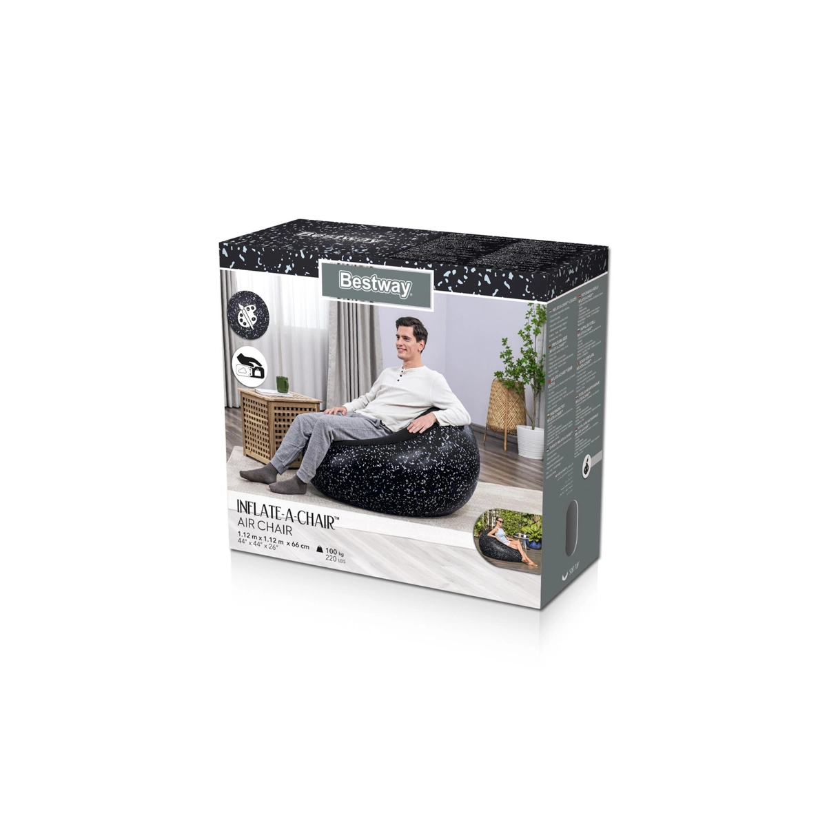Met het tweewegsventiel met vergrendeling maak je hem in een mum van tijd gebruiksklaar en berg je hem net zo snel weer op. Het duurzame PVC is geschikt voor dagelijks gebruik binnen en buiten – in de woonkamer, op het terras of op vakantie. De maximale draagkracht van 100 kg en de praktische reparatiepatch in de verpakking zorgen voor extra zekerheid en een lange levensduur.