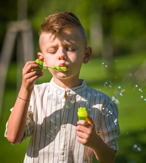Lichte en makkelijk draagbare bellenblaas voor in de tuin, het park en op feestjes.