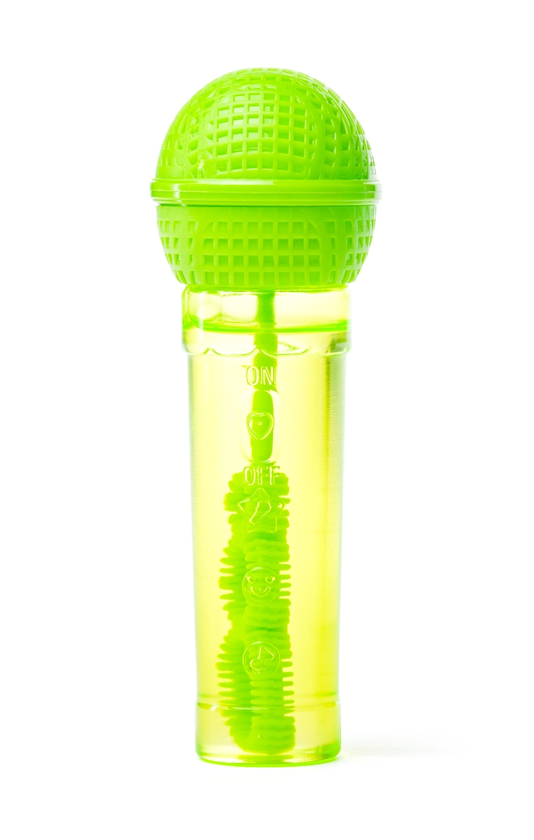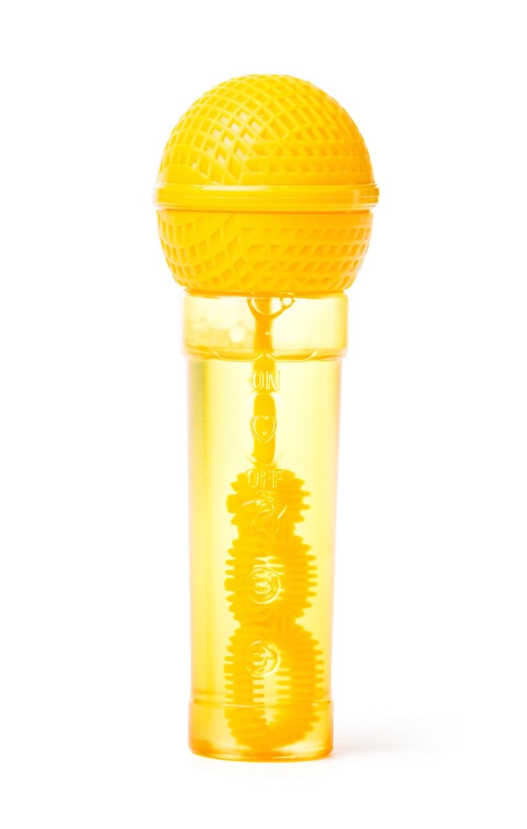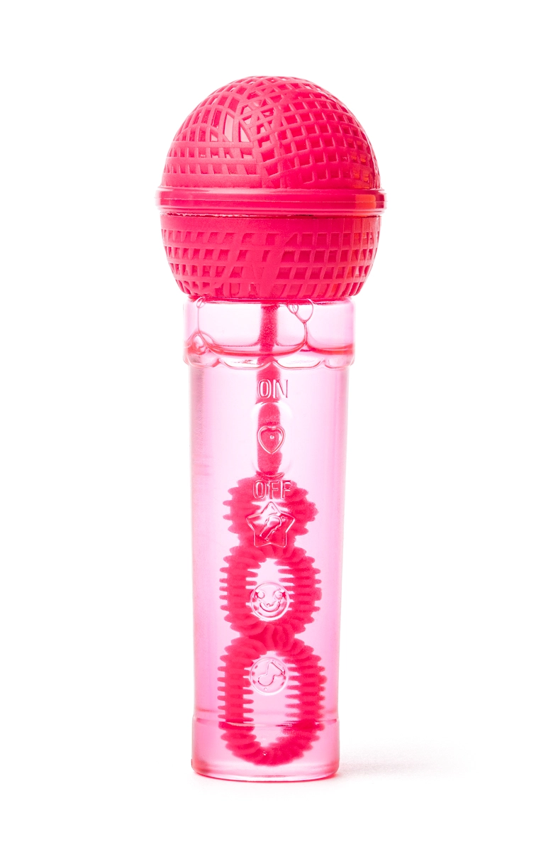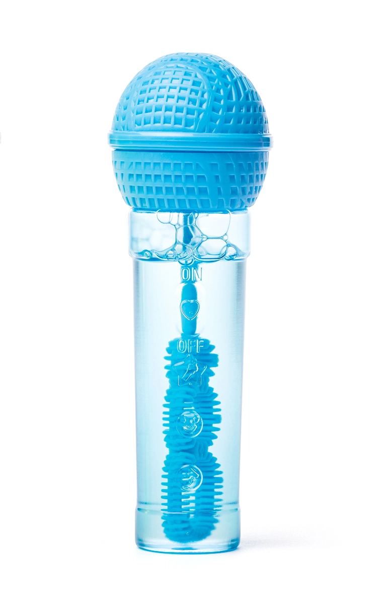 De getextureerde “microfoonkop” ligt comfortabel in de hand en geeft de bubbeltshow net dat beetje extra.