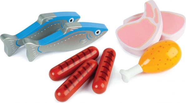 Verse bezorging van vlees en vis in een houten kist met handvatten. Een geweldig speelgoed voor rollenspel als winkelier of kok; de set bevat 2 vissen, 2 karbonades, 3 worstjes en 1 kippenpoot. Een geweldige manier om kinderen te leren over het belang van een gezond en uitgebalanceerd dieet, waar voedsel vandaan komt en hoe je het bereidt. Elk stuk is stevig en ideaal voor kleine kinderhanden. Ondersteunt creatief en fantasierijk spel. Gemaakt van hoogwaardige materialen uit verantwoord beheerde bronnen. Voldoet aan de Europese veiligheidsnorm. Belangrijkste kenmerken: ideaal gevormd voor kleine kinderhanden, bevordert creativiteit en verbeeldingskracht.