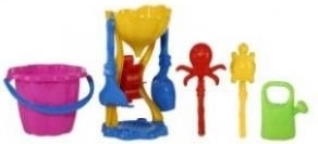 Ontdek speelplezier op het strand en in de zandbak met deze veelzijdige zandset. De set bevat een kunststof emmer, zandmolentje, vormpjes, zeef, gieter, schepje en harkje. Het speelgoed is geschikt voor kinderen vanaf 1 jaar. Verkrijgbaar in verschillende varianten, de keuze is willekeurig; de prijs geldt voor 1 stuk.