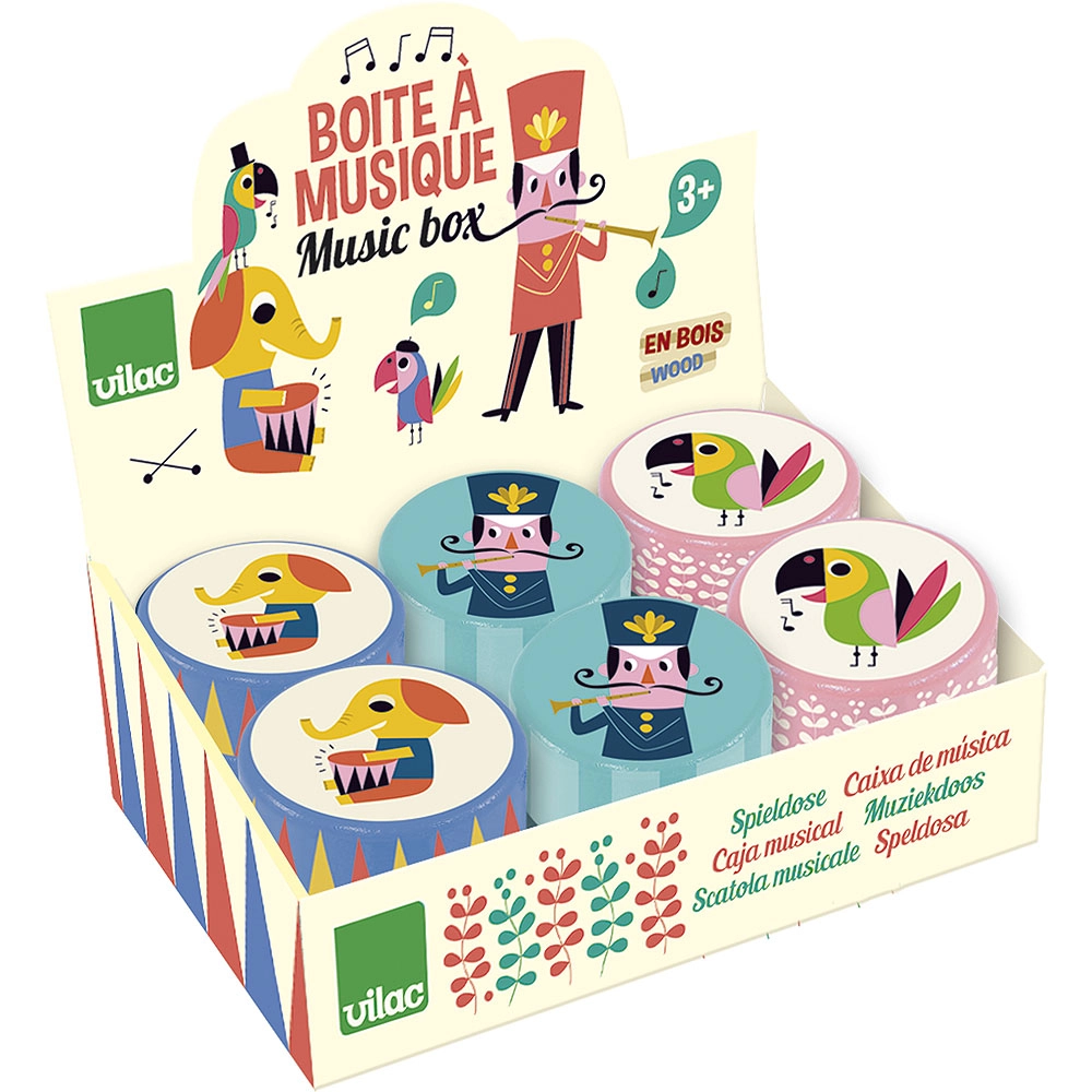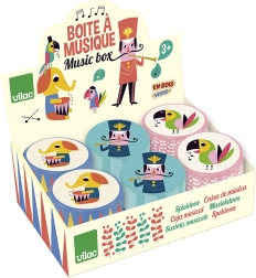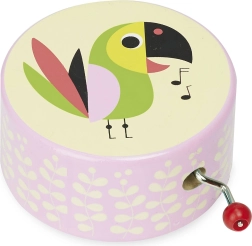 Houten muziekdoosje, 1 stuk. Geïllustreerd door Ingela P. Arrhenius. Belangrijkste kenmerken: speelt een aangename melodie bij het draaien aan de slinger, ontwerp van Ingela P. Arrhenius. De Zweedse kunstenares Ingela Peterson Arrhenius werd geboren in 1967. Kunst en design hebben altijd een plek gehad in haar leven en voordat haar carrière als illustratrice begon, werkte Ingela als artdirector in Stockholm. Daarna studeerde ze reclame- en grafisch ontwerp aan een kunstschool, eveneens in Stockholm. In 1992 begon ze als freelance illustratrice en werkte internationaal in reclame, design, uitgeverij… In het verleden creëerde ze drukpatronen voor stoffen, behang en papierwaren, en werkte ze ook aan verpakkingen, productdesign, woonaccessoires en speelgoed. Haar posters en designspeelgoed zijn over de hele wereld te vinden. Ze heeft een passie voor retrostijl, wat duidelijk te zien is in haar werk en in haar enthousiasme voor typografie en kleur. Ze woont nu in Stockholm met haar man en twee zonen.