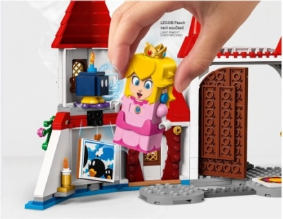 Betreed het koninkrijk van PRINCESS PEACH met het rijk gedetailleerde kasteelmodel dat je LEGO Super Mario banen uitbreidt. Je vindt er een troonzaal met draaibare muur waarachter Bowser verscholen zit, een glas-in-loodraam met Peach, een geheime schilderij met actiemarker en een taart met Goomba. Verder zijn er een speciale kasteelpijp, een tijdbox, een lavabrug en een schaal met paars fruit.