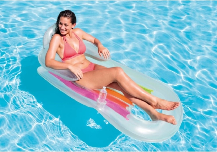 Het opblaasbare ligbed Intex King Kool is ontworpen voor comfortabel loungen en zonnen op het wateroppervlak. Het geïntegreerde kussen, de armsteunen en de gevormde zitting zorgen voor een stabiele, aangename houding, terwijl de praktische bekerhouder je verfrissende drankje altijd binnen bereik houdt.
