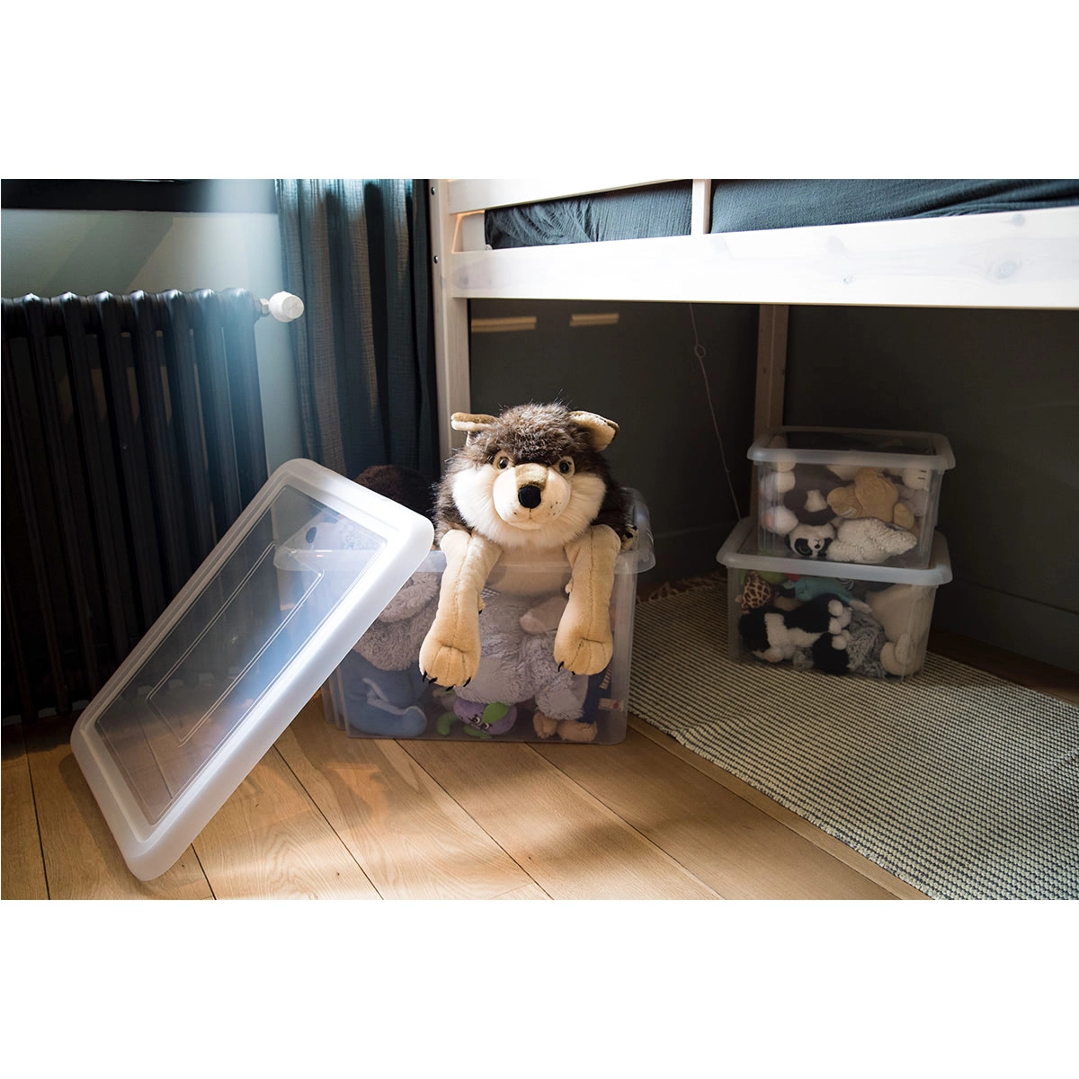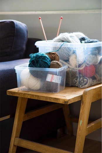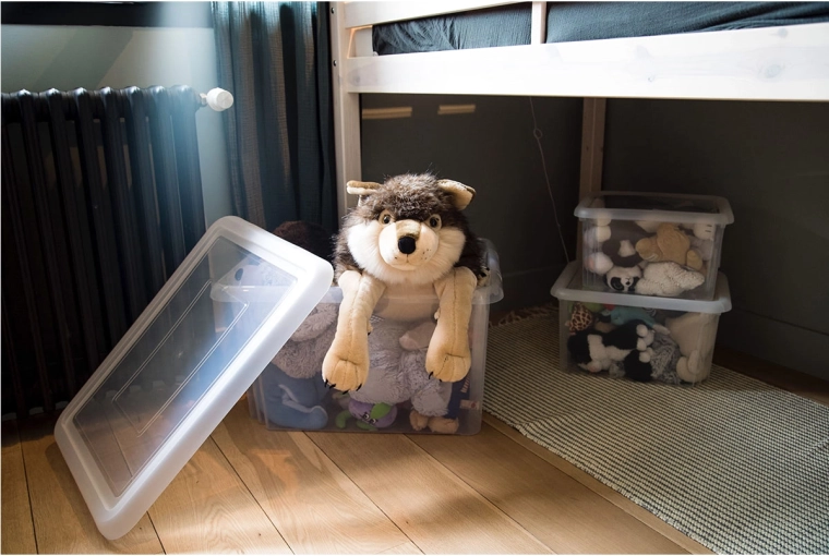 Het stevige deksel maakt veilig stapelen mogelijk en benut zo optimaal de vloer, kasten en de ruimte onder het bed.