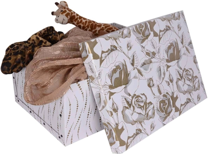 Ontdek de praktische én decoratieve MAXI-opbergdoos met gouden rozen, die uw interieur een luxueus maar subtiel accent geeft. Dankzij 100% gerecycled karton en hoogwaardige Italiaanse productie is het een uitstekende keuze voor dagelijks gebruik én langdurige opslag.