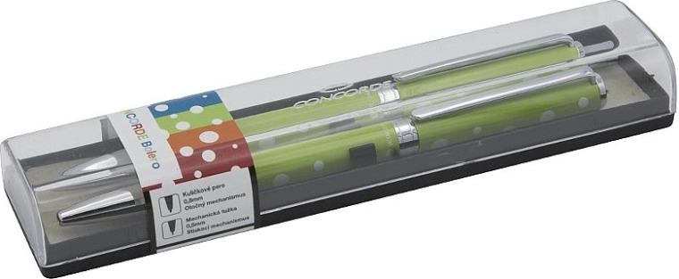De elegante cadeauset CONCORDE Bolero zal elke liefhebber van schrijven bekoren. Bevat een volledig metalen balpen met 0,8 mm punt en draaisysteem en een mechanisch potlood 0,5 mm met geïntegreerde gum en intrekbare punt. Inclusief een hoogcapacitaire SILVER-vulling en een stijlvol kunstlederen etui.
