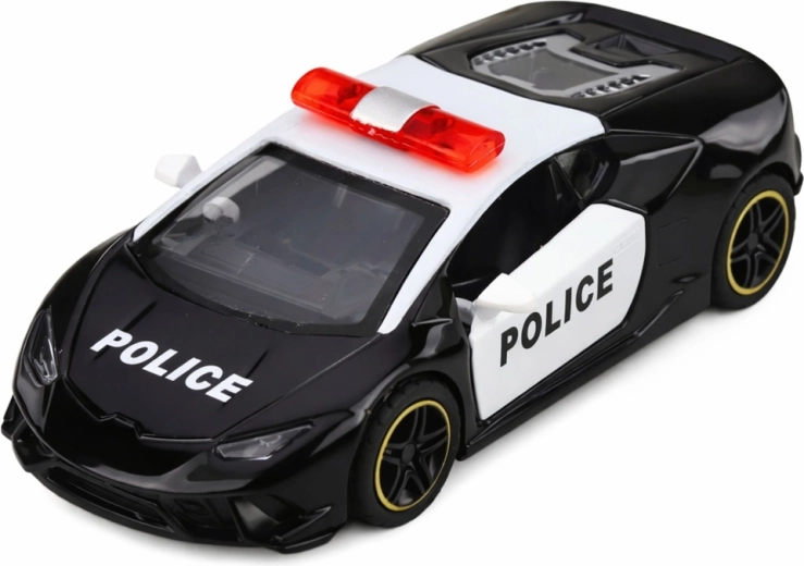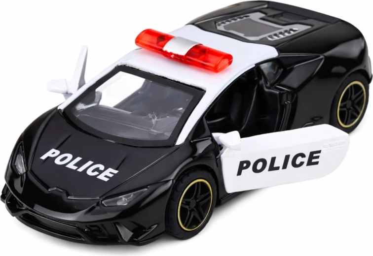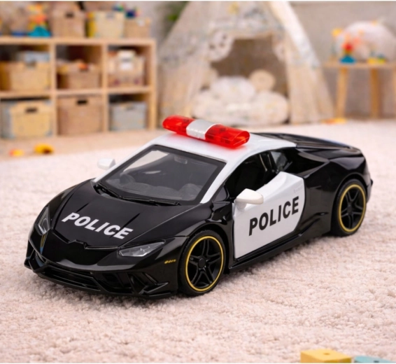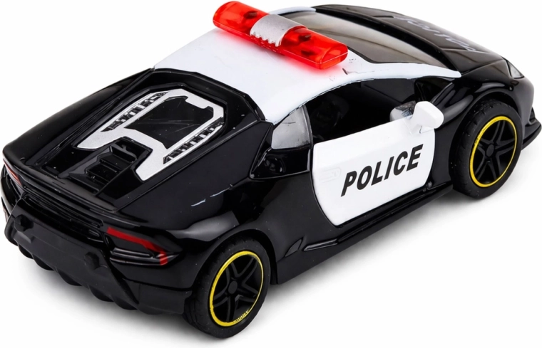 Stijlvolle politie sportauto op schaal 1:43 die zowel kleine als grote fans van snelle wagens zal verrassen. Dankzij de metalen carrosserie, het pull-back opwindmechanisme en de openende deuren biedt hij realistisch speelplezier zonder batterijen. De compacte afmetingen en het duurzame ontwerp garanderen langdurig plezier en maken hem ook een decoratief stuk voor in de collectie.