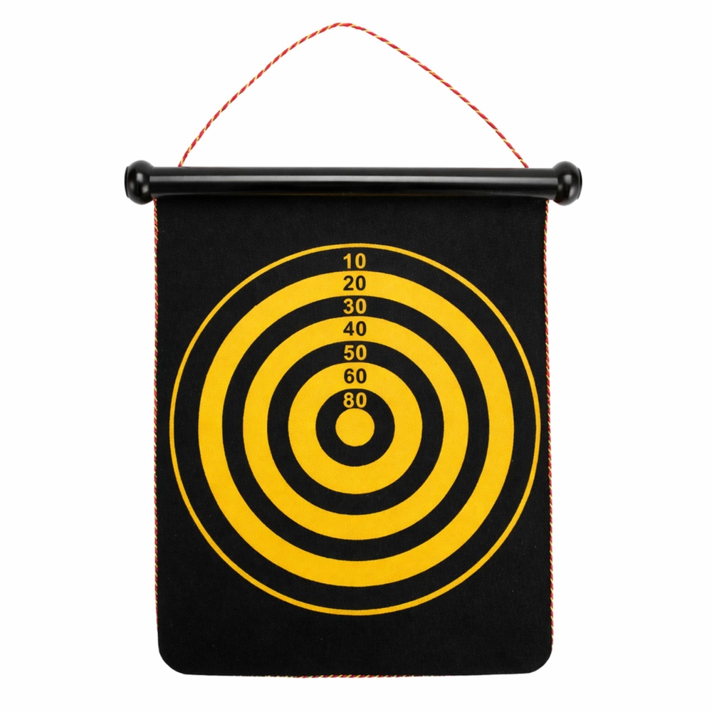 Ideaal voor zowel beginners als gevorderden: de ene zijde biedt een standaard scorebord, de andere doelringen voor gericht mikken. De kleurscheiding van de pijlen (rood en geel) maakt eerlijke duels in duo’s of teams mogelijk. Magneten hechten stevig aan het oppervlak maar beschadigen het meubilair niet.