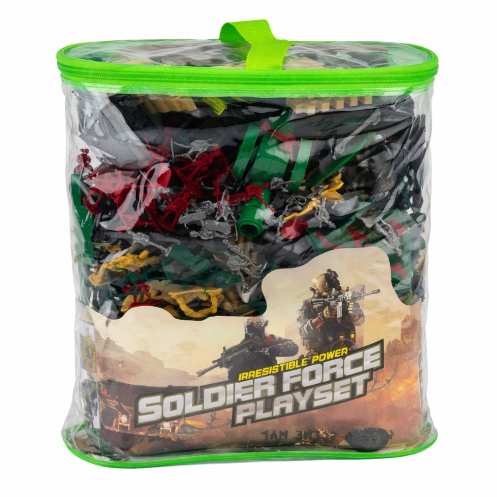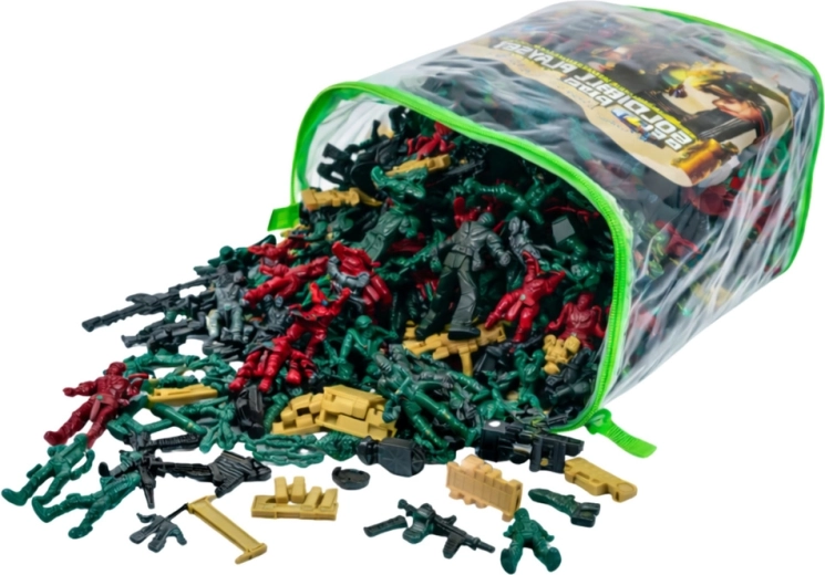 Ontdek de uitgebreide militaire set voor creatief spel met tot 300 onderdelen – soldaten, voertuigen, kanonnen, wapens en volop accessoires. Duurzame plastic figuren stimuleren de fantasie, motoriek en teamwork. De praktische transparante tas met rits maakt opbergen en meenemen eenvoudig. Ideaal voor actiemissies thuis, buiten en onderweg.