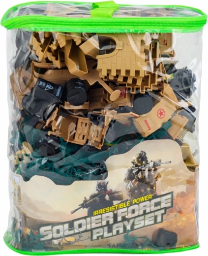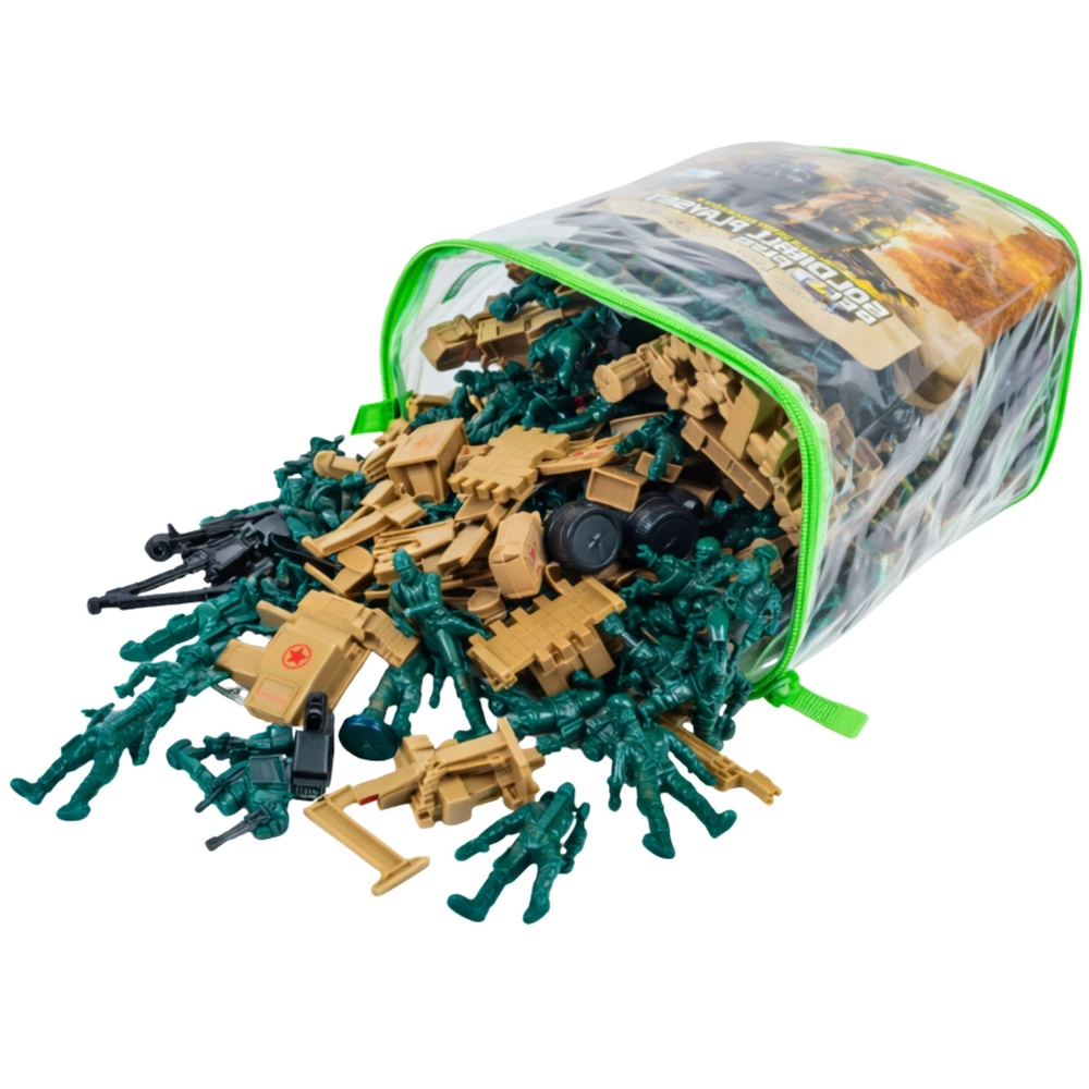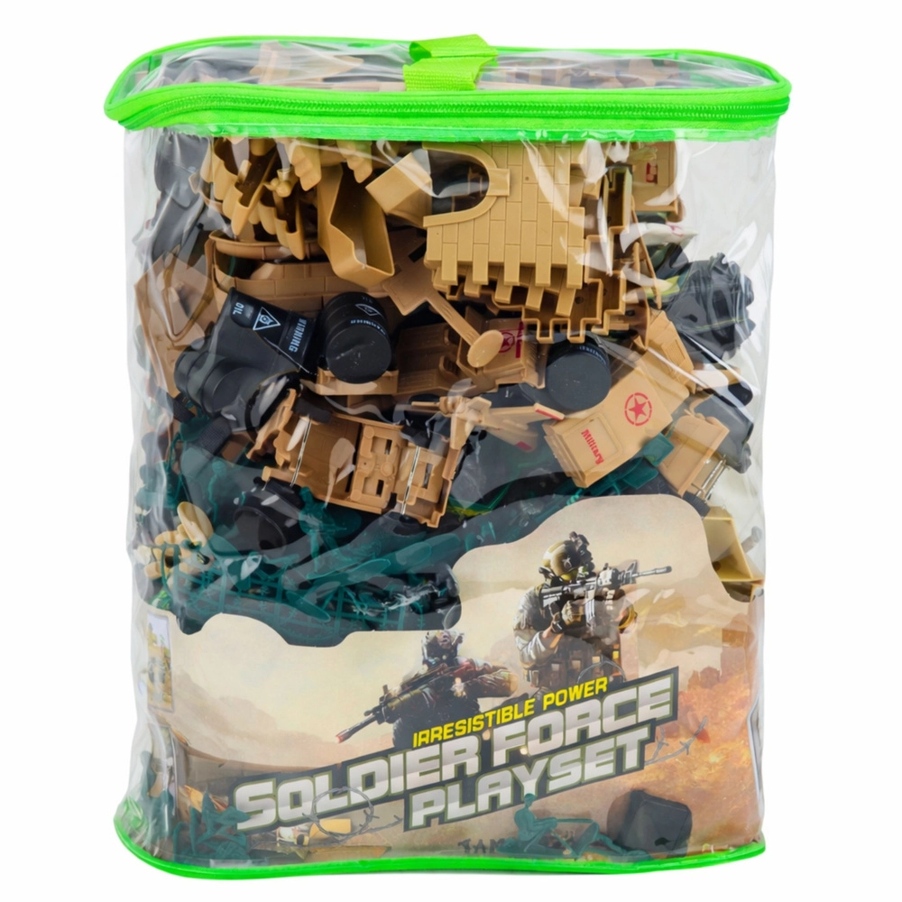 Uitgebreide militaire set voor kinderen met tot wel 400 onderdelen voor eindeloze scenario’s van veldslagen, missies en basisverdediging. Bevat soldaten, voertuigen, kanonnen, barrières en andere militaire accessoires. Inclusief een transparante tas met ritssluiting voor eenvoudig opbergen en meenemen. Duurzame plastic figuren stimuleren creatief spel, ontwikkelen de verbeelding en de fijne motoriek – ideaal voor solo- en teamspeelplezier, binnen en buiten.