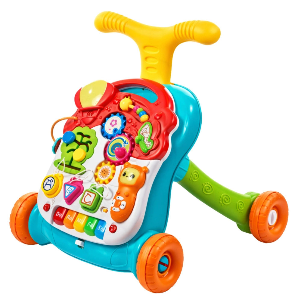 - 5 functies in 1: loopwagen, interactief paneel, vormensorteerder, muziekpaneel, tafel