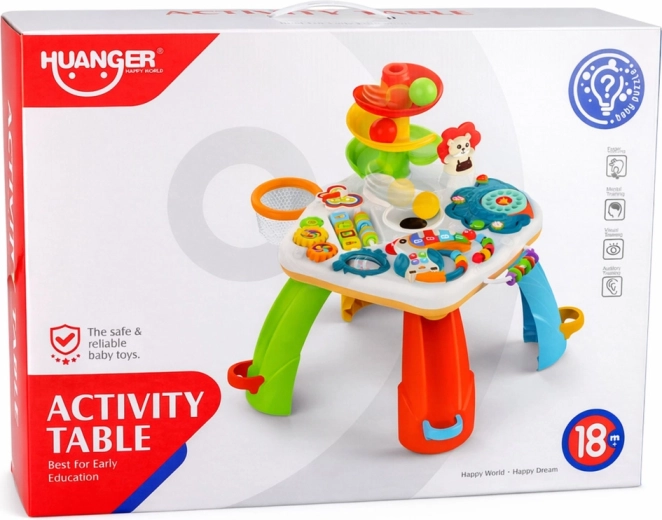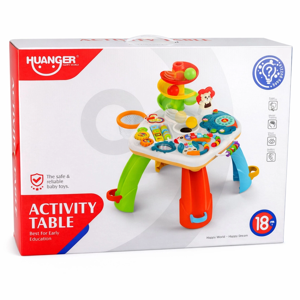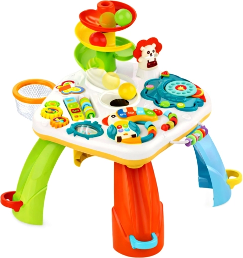 De interactieve educatieve speeltafel voor de allerkleinsten combineert leren en plezier in één. Biedt een kleurrijk pianootje met melodieën, een glijbaan voor balletjes, bewegende elementen en licht- en geluidseffecten die de fijne motoriek, coördinatie en het herkennen van kleuren en vormen stimuleren.
