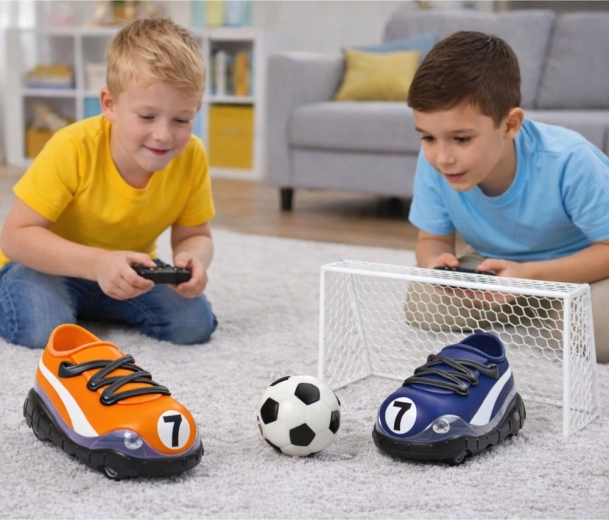 Een leuke set van twee RC-auto’s in de vorm van sneakers brengt tafel- en vloervoetbal naar huis. Met de draadloze controller kunnen kinderen hun eigen wedstrijden organiseren, op doel schieten en nauwkeurigheid trainen. Dankzij de 2,4 GHz-frequentie is de besturing stabiel, het vooruit/achteruit rijden en sturen soepel en de robuuste kunststof constructie kan intensief spelen aan. Inclusief een mini-doel, voetbal en twee controllers – ideaal voor broers, zussen en vrienden.