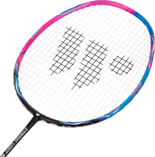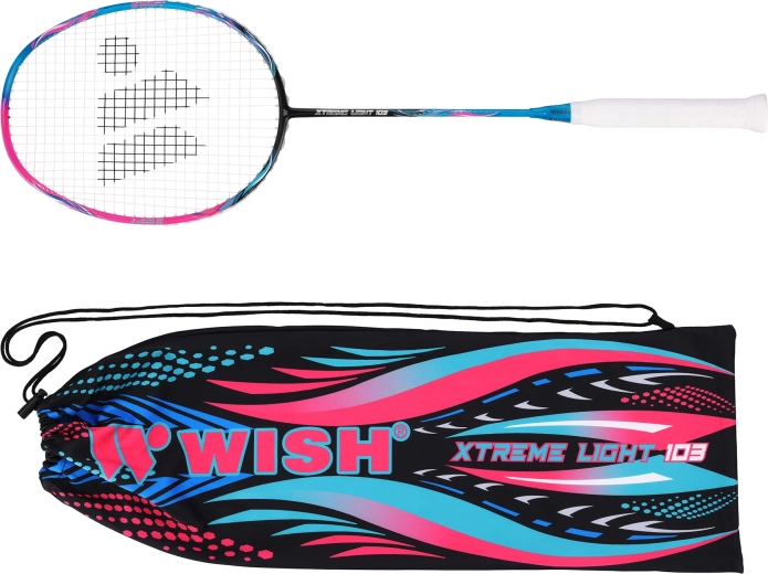 Ultralichte badmintonracket WISH Xtreme Light 103 voor snel, precies en aanvallend spel. Dankzij het gewicht van slechts 72 g, het grafeencomposiet en de lichte head-heavy balans biedt hij uitstekende wendbaarheid, stabiliteit en krachtige smashes. Wordt geleverd besnaard en speelklaar met een comfortabele G2-grip en een praktische hoes.