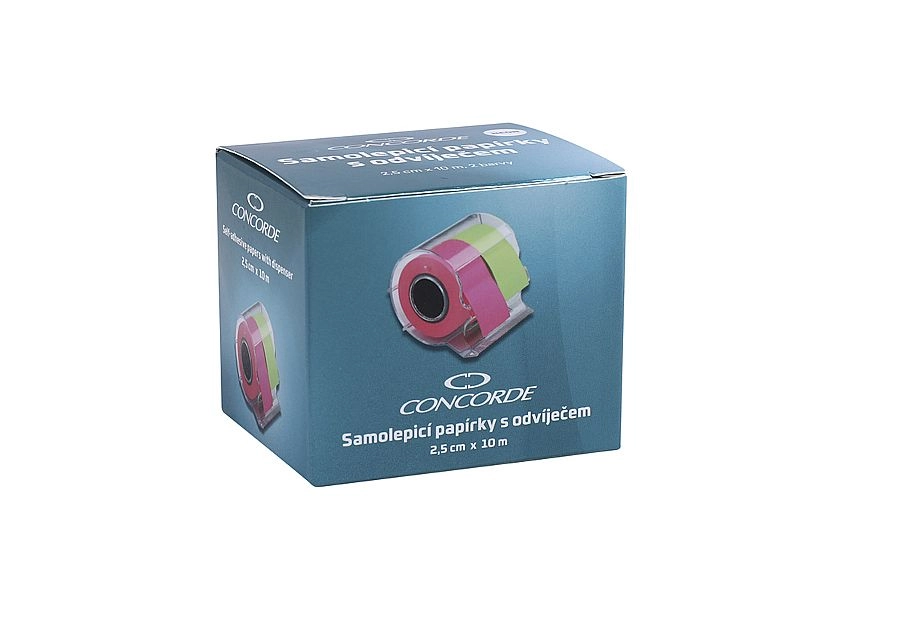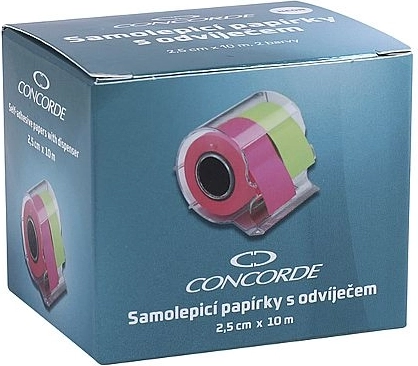 Praktische zelfklevende notitierollen met dispenser in twee neonkleuren (roze en groen) voor snelle aantekeningen en markeringen. Elke rol heeft een breedte van 2,5 cm en een lengte van 10 m, de achterzijde is volledig klevend over de hele breedte. Dankzij het geïntegreerde snijmesje scheur je eenvoudig precies zo lang af als je nodig hebt. Hecht uitstekend op papier en gladde oppervlakken.